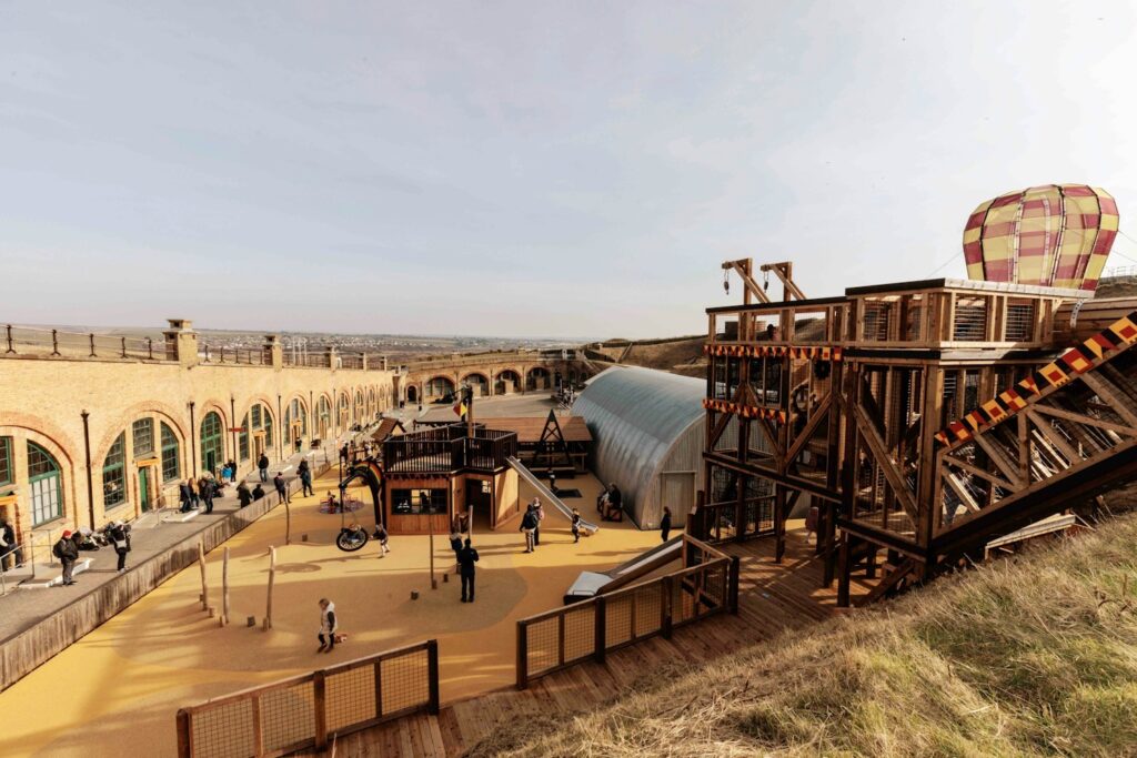 There are indoor immersive play areas, outdoor jumping pillows, rock climbing, and plenty of play areas to boot. We loved ending our day in the big-top circus tent, where local theatre students perform circus skills and other acts.